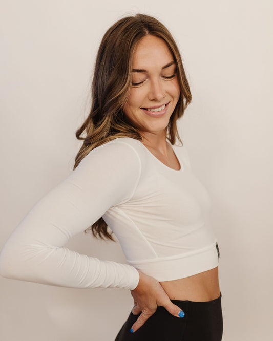 Our layering tanks, t-shirts, and long sleeve tops are reversible and feature a non-slip, cropped length. Plus, these pieces are so comfortable you’ll forget it's even there!
